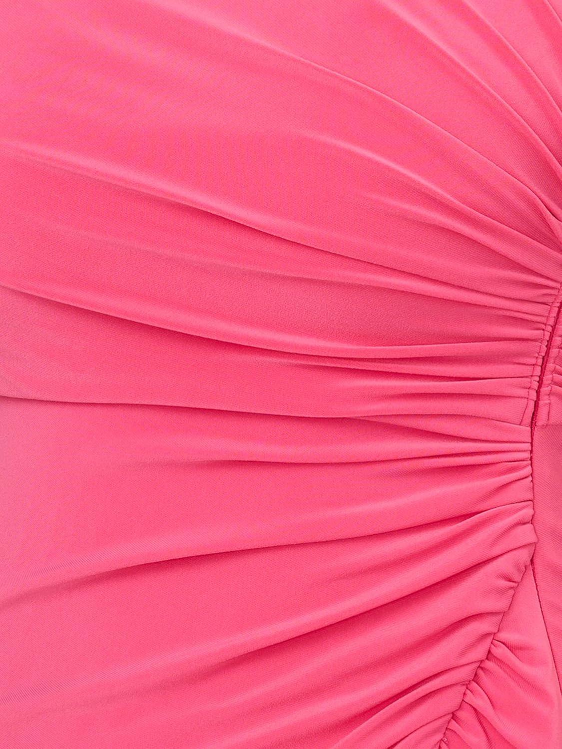 Modern texture and print lend themselves to this classic chiffon gown. This evening gown features a one shoulder neckline, fitted bodice, and flowing skirt. A knotted detail at the waist accentuates the wearer’s figure and creates a draped effect down the skirt. Fully lined, this gown is crafted from a floral print chiffon fabric with a mini-pleat textured look. A side zipper closure completes this one shoulder gown. This floral formal dress is an elegant choice when styled with nude heels and a velvet clutch.
