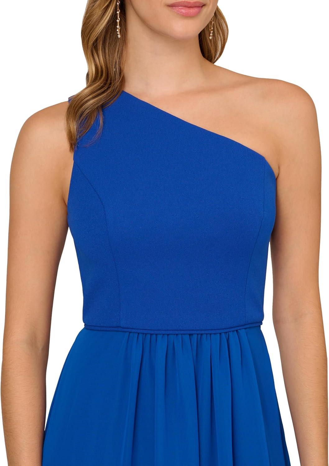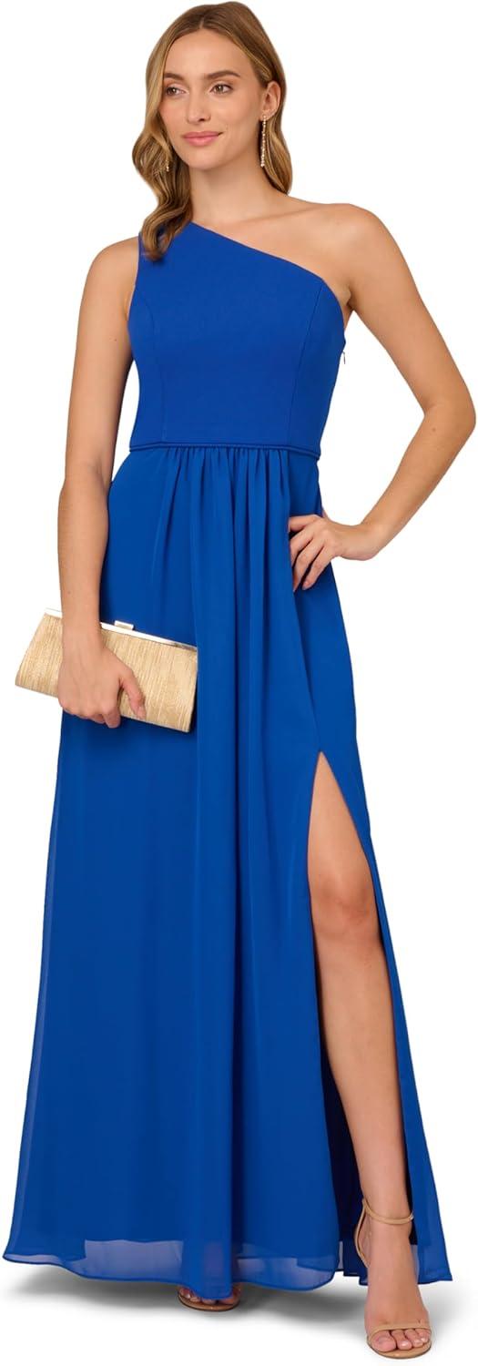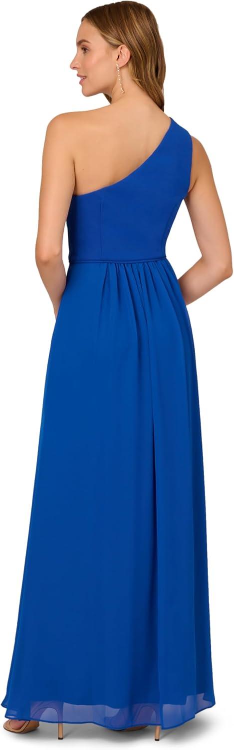 imageAdrianna Papell Floral Print Chiffon Gown with One Shoulder NecklineViolet Cobalt
