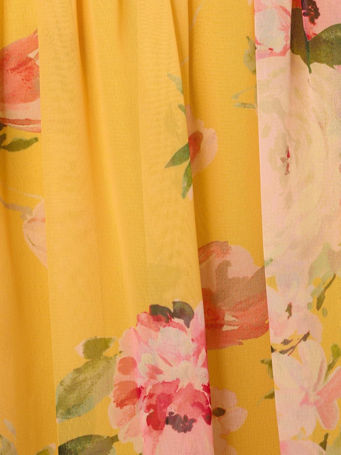 imageAdrianna Papell Floral Print Chiffon Gown with One Shoulder NecklineYellow Multi