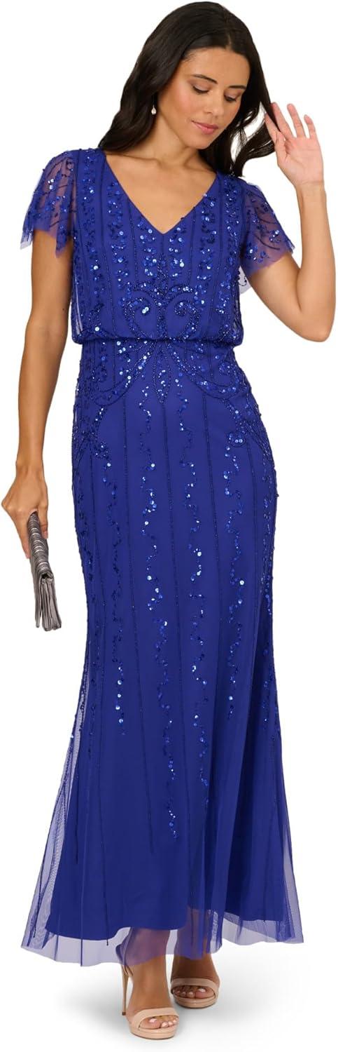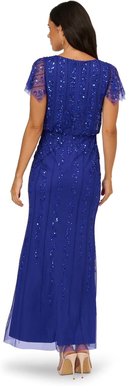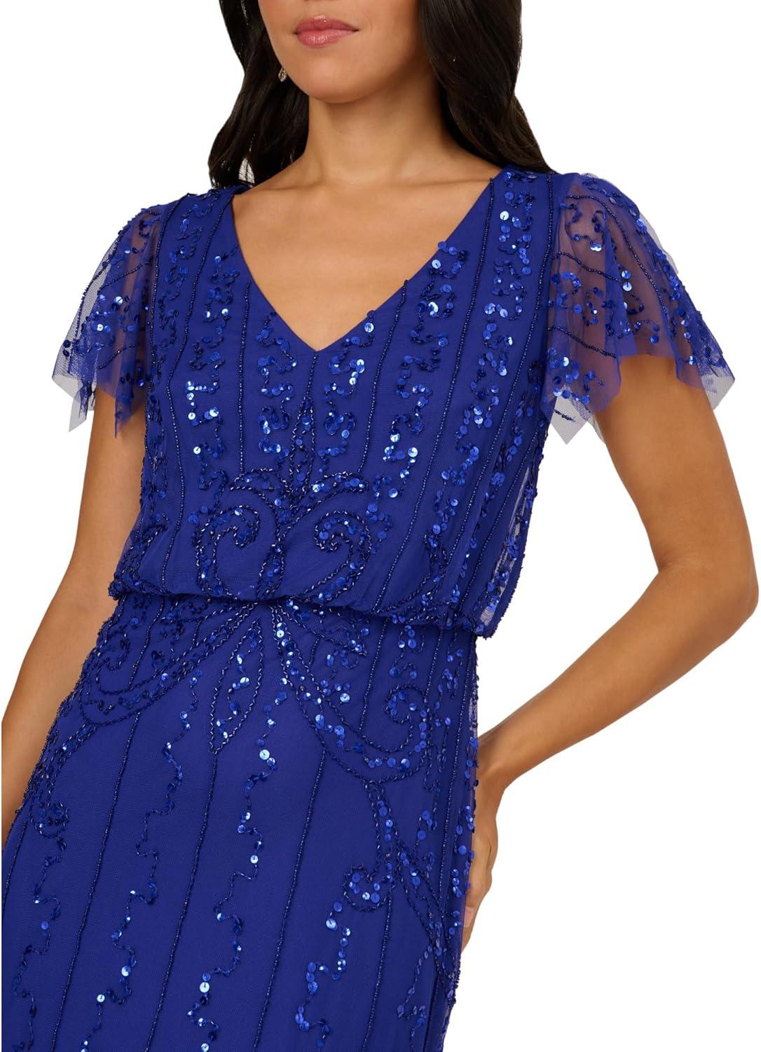 Adrianna Papell Flutter Sleeve Beaded Blouson Gown