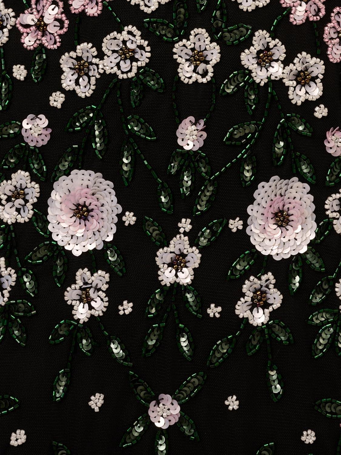 Indulge in elegance with this gorgeous square neck beaded gown. The mermaid silhouette adds classic glamor, while above-the-elbow sleeves give a touch of sophistication. The godet skirt creates a mesmerizing flow in your every movement. Sparkling hand-beaded floral embellishments trail from the shoulders to the hem of this luxurious maxi gown design.