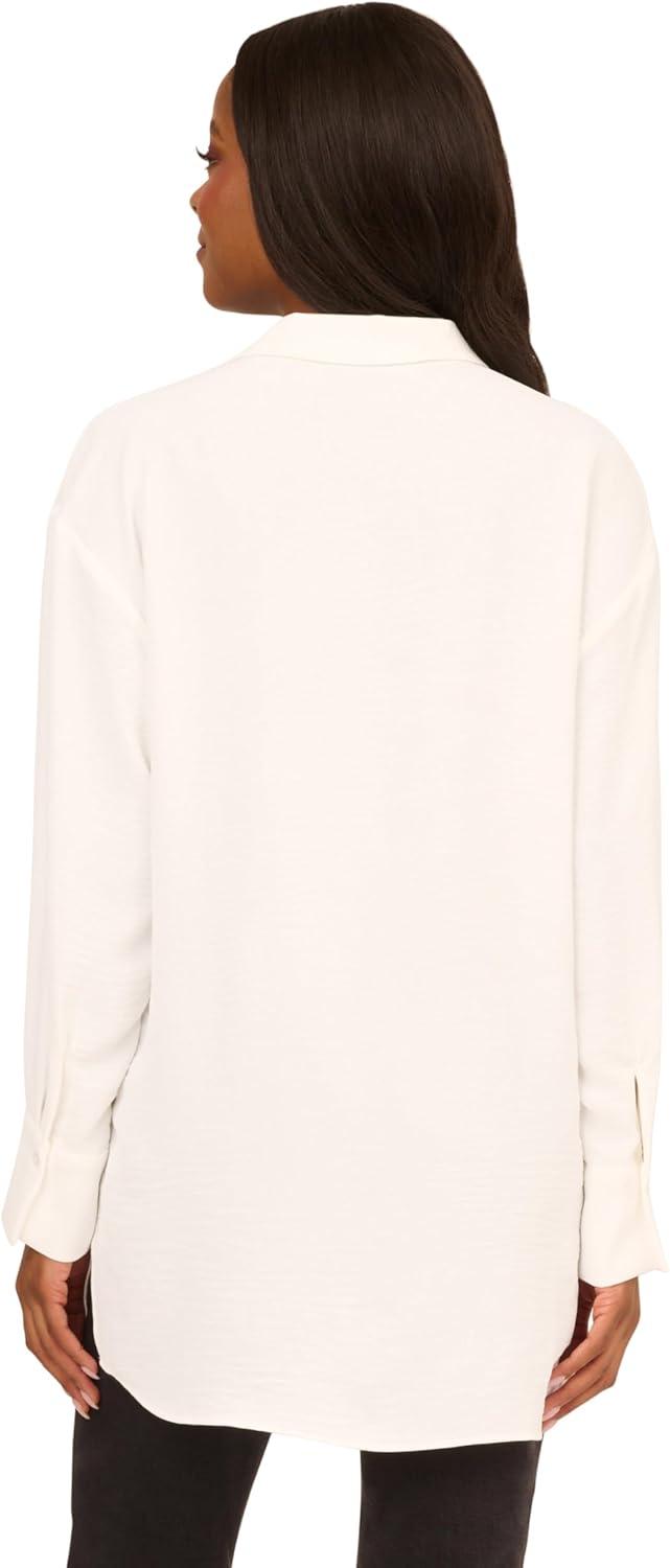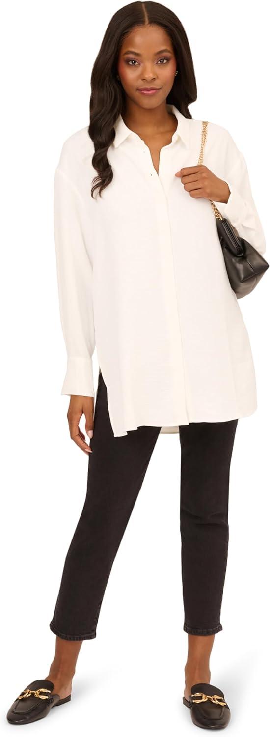 Adrianna Papell Womens Airflow Woven Button Down Top W/Side Slits(Ivory)