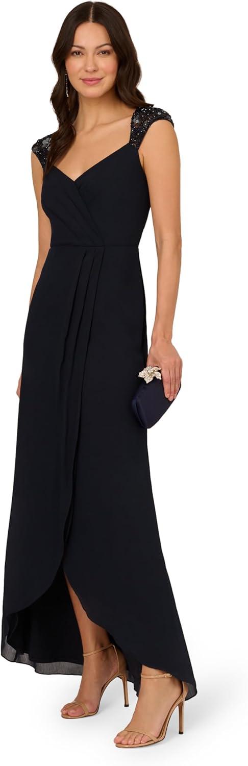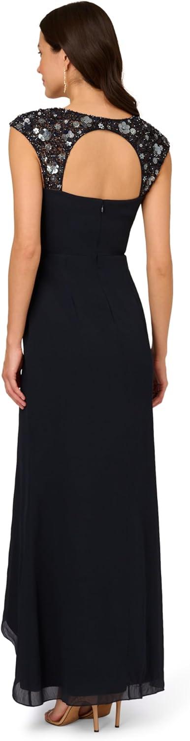 Adrianna Papell Women’s Bead Yoke Chiffon Dress(Midnight)