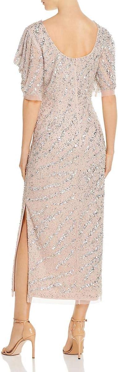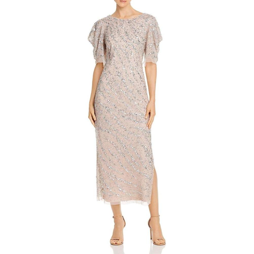 Adrianna Papell Womens Beaded Ankle Length Dress(Light Champagne)