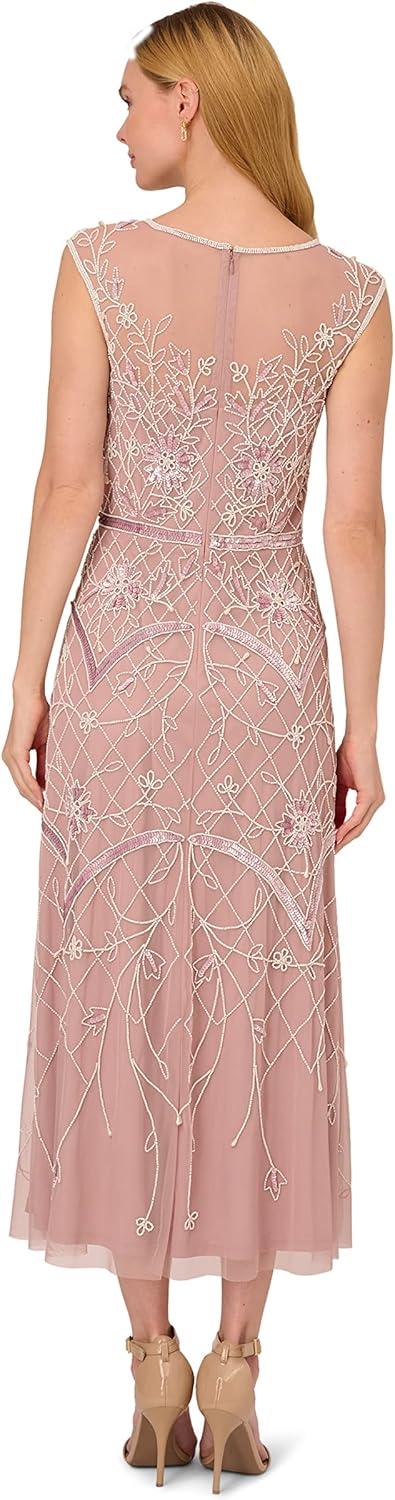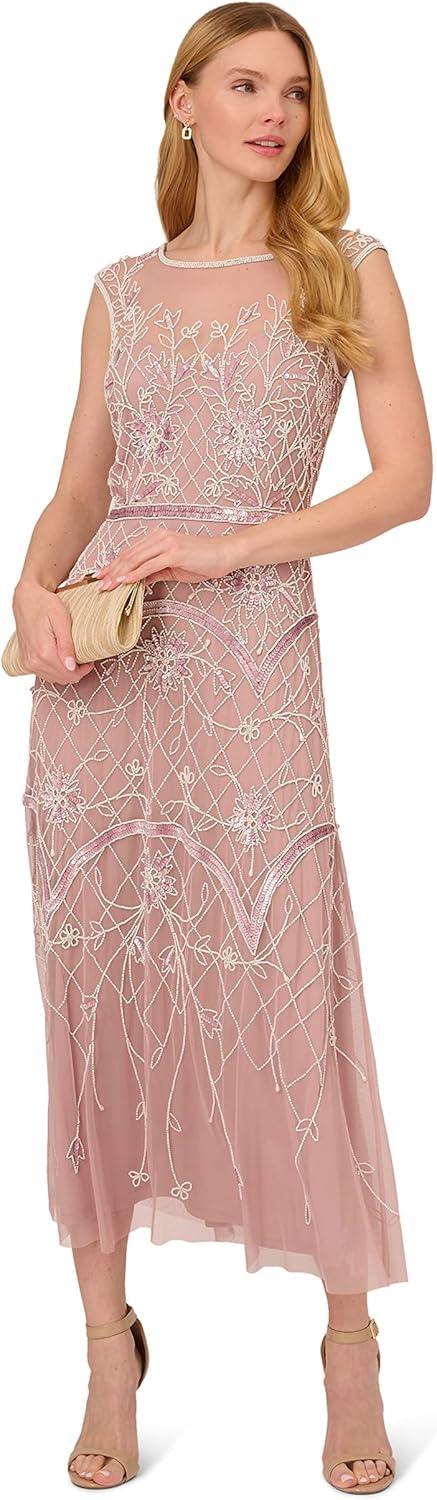 Adrianna Papell Womens Beaded Ankle Length Dress(Dusted Petal/Ivory)