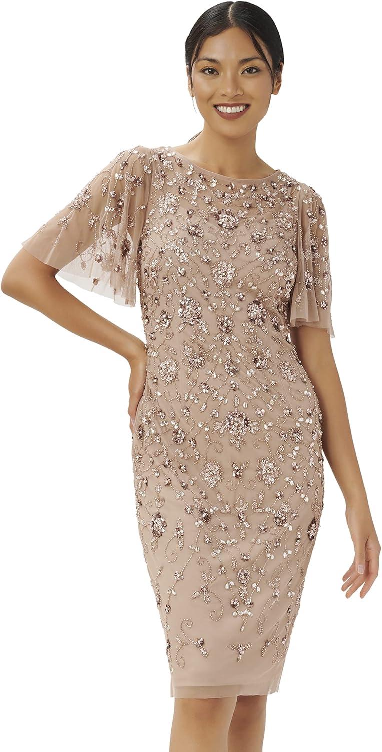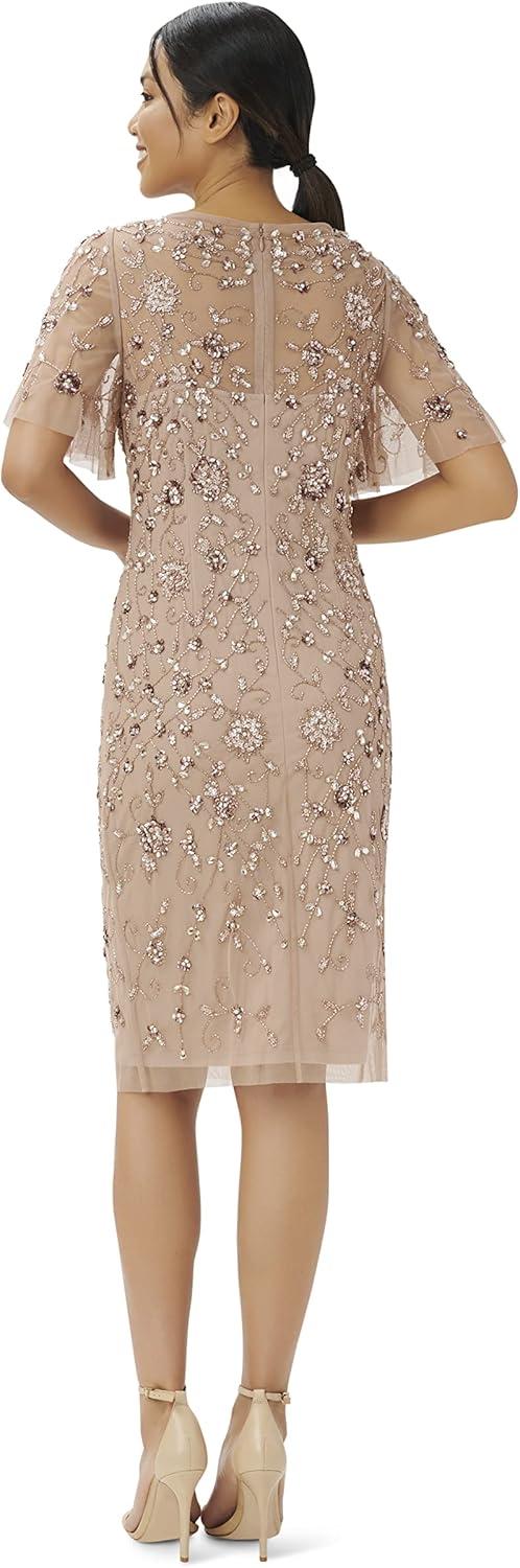 Adrianna Papell Women’s Beaded Short Dress(Rose Gold)