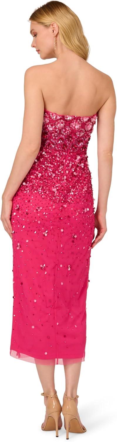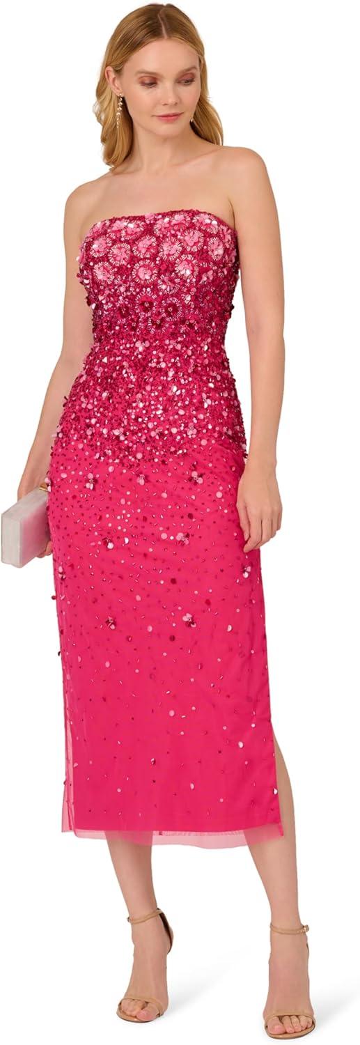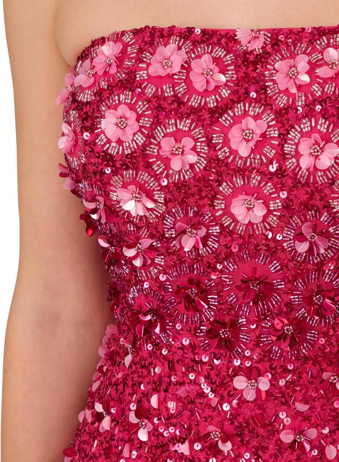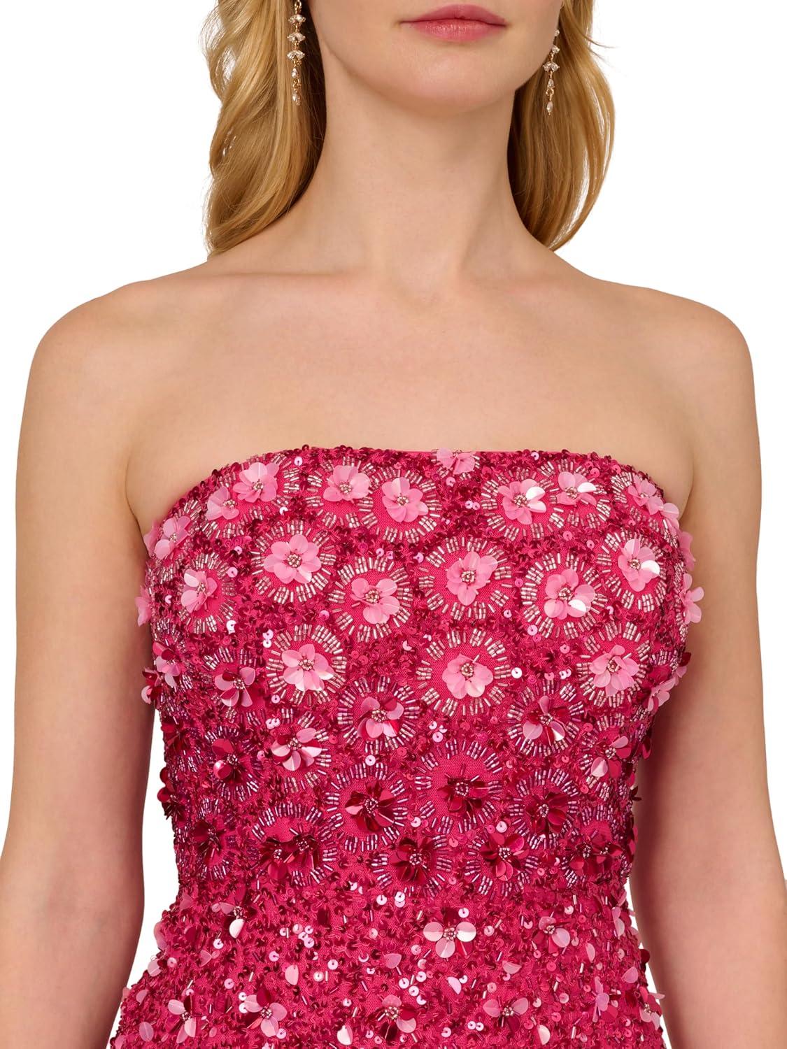 Adrianna Papell Women's Beaded Strapless Gown(Hot Pink)
