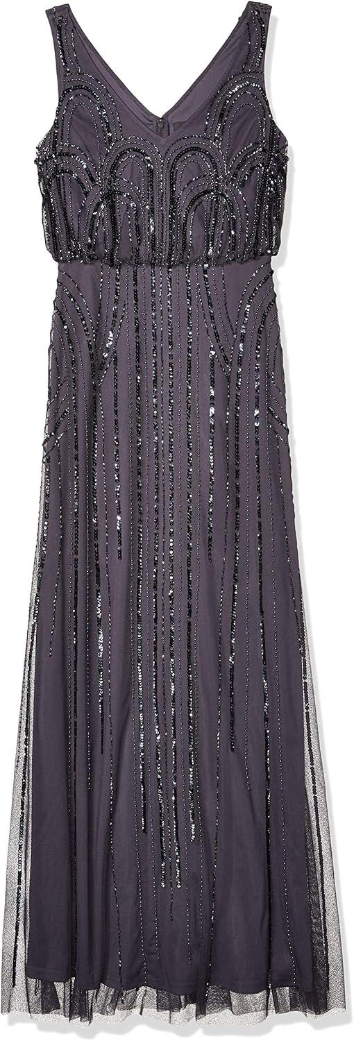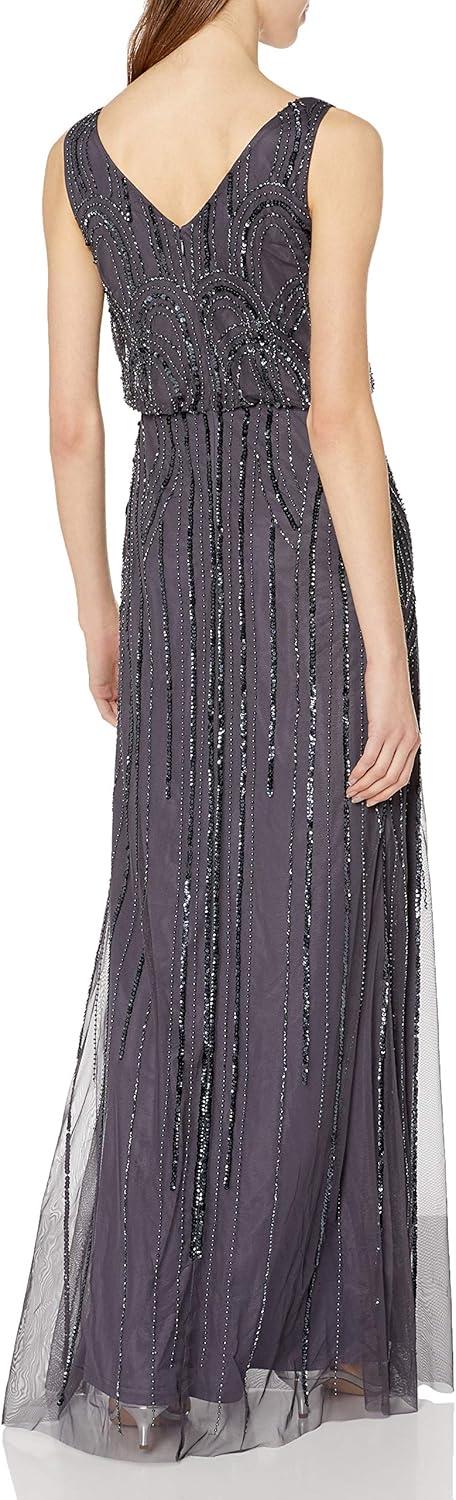 Adrianna Papell Womens Blsn Beaded Art Nouveau(Gunmetal)