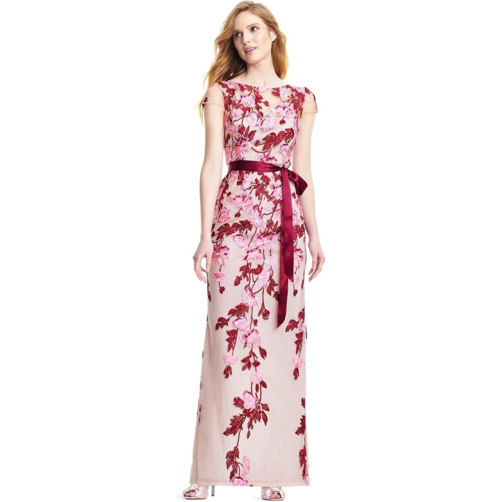 Adrianna Papell Womens Cascading Floral Colmn Gwn(Merlot Multi/Nude)