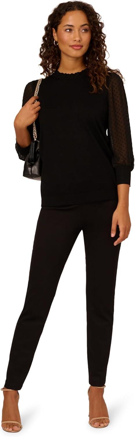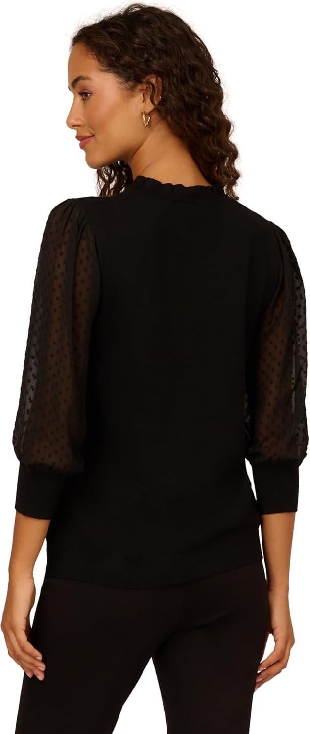 Adrianna Papell Women’s Clip Dot Sleeve Twofer Sweater(Black)