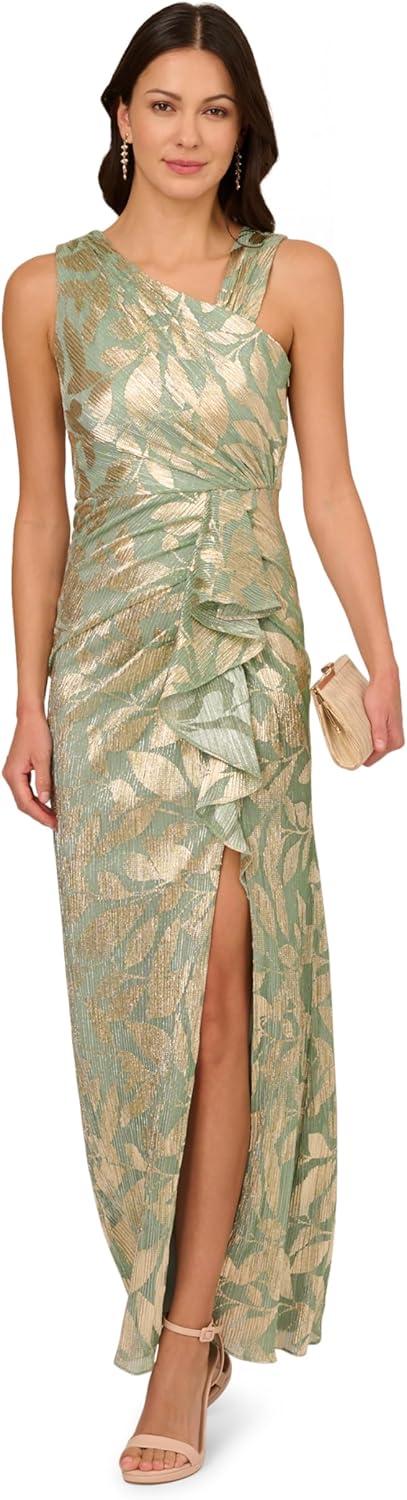 Adrianna Papell Womens Foil Asymmetric Gown(Sage/Gold)