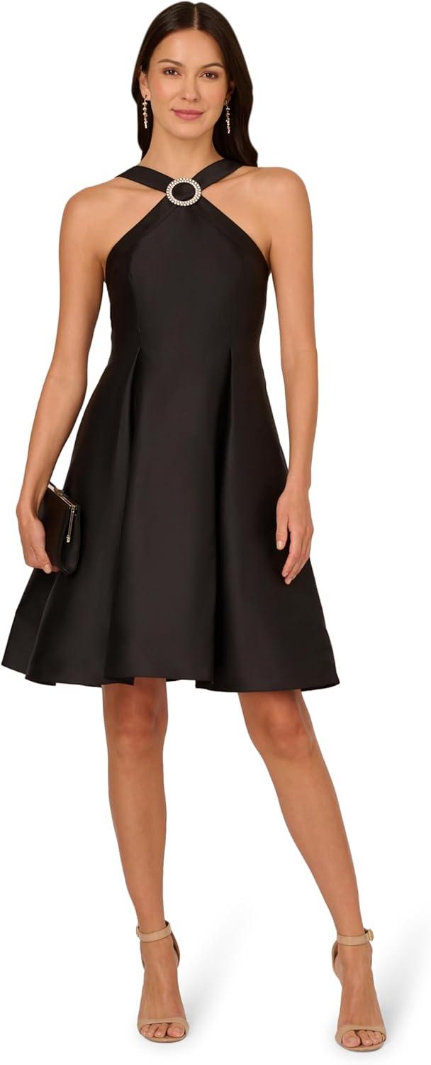Adrianna Papell Women’s Halter Mikado Short Dress(Black)