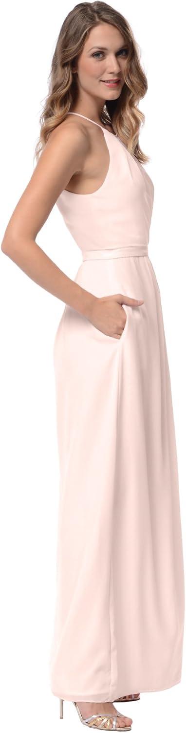 Gorgeous and irresistibly glamorous, this halter dress is your ticket to an event youll never forget. This show-stopping dress is filled with stylish features sure to turn heads. From its pretty pleated bodice to its soft, flowing skirt, each element of this beautiful formal dress is designed to make you feel your most fabulous. Other features include a banded waist and back zipper closure. From the black-tie wedding to a special gala or prom, dont underestimate the chic factor of this jaw-dropping dress. Pair it with strappy metallic heels and a bold, beaded clutch to create a look that showcases your killer sense of style.