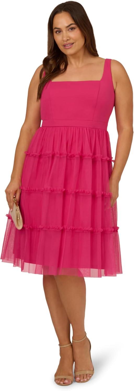 Adrianna Papell Women’s Knit and Mesh Midi Dress(Bright Rose)