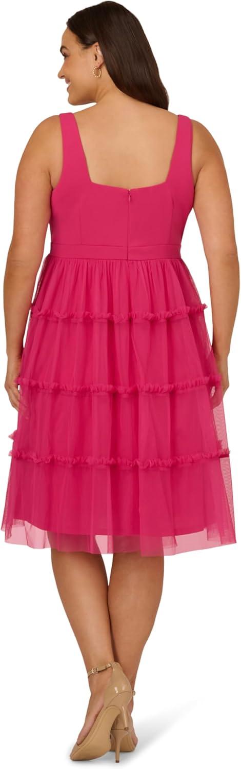 Adrianna Papell Women's Knit and Mesh Midi Dress(Bright Rose)