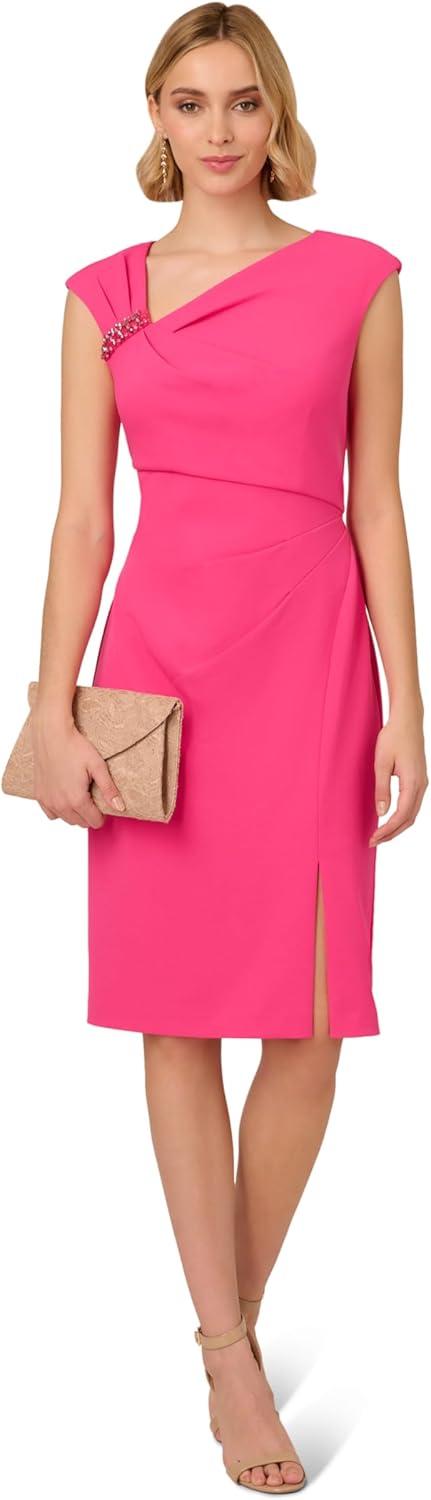 Adrianna Papell Womens Knit Crepe Short Dress(Electric Pink)