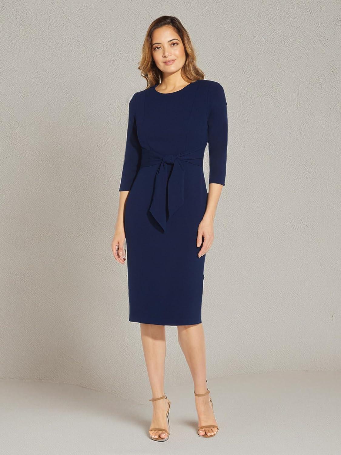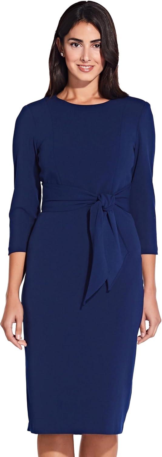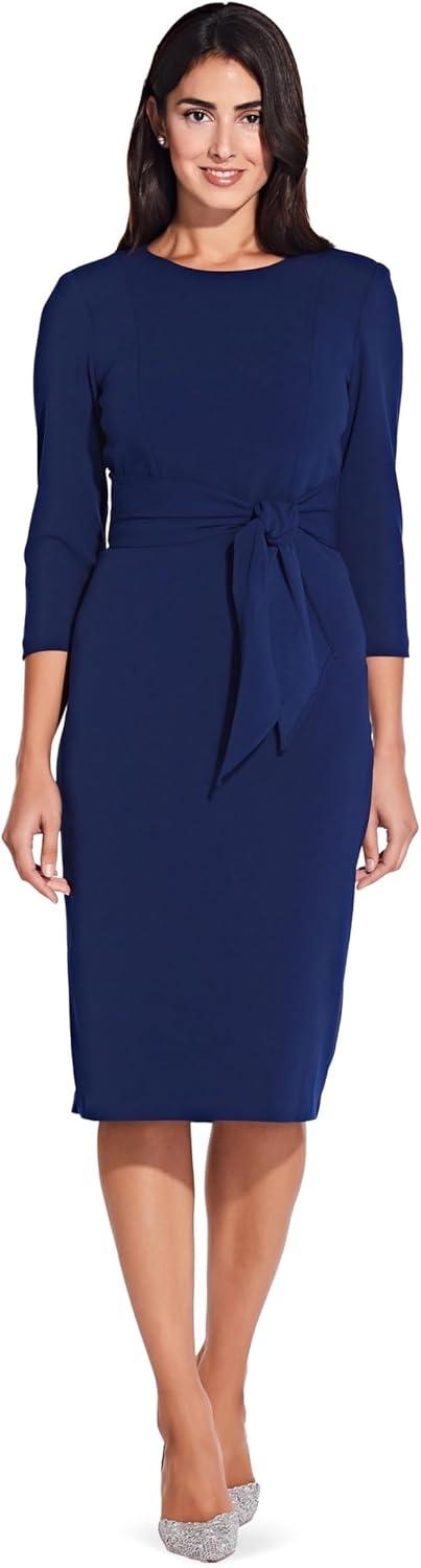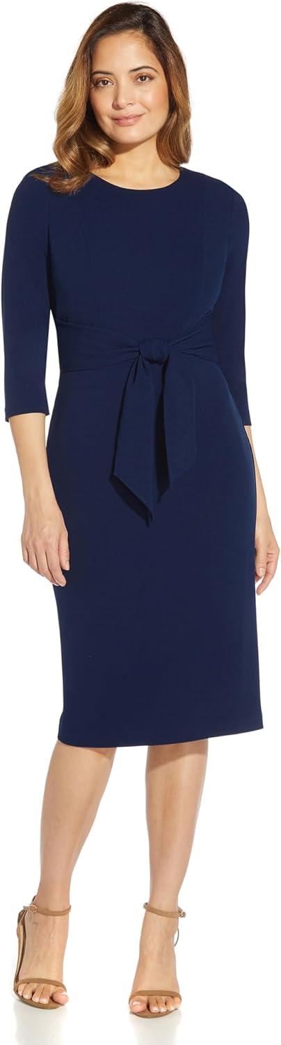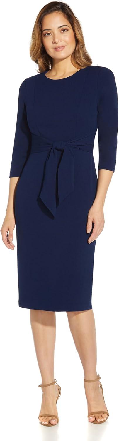 Adrianna Papell Womens Knit Crepe Tie Waist SheathDress(Navy Sateen)