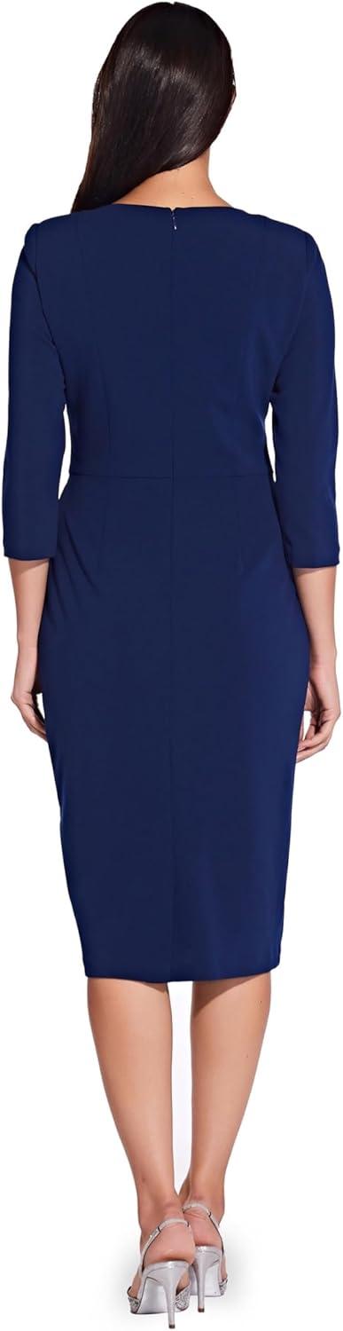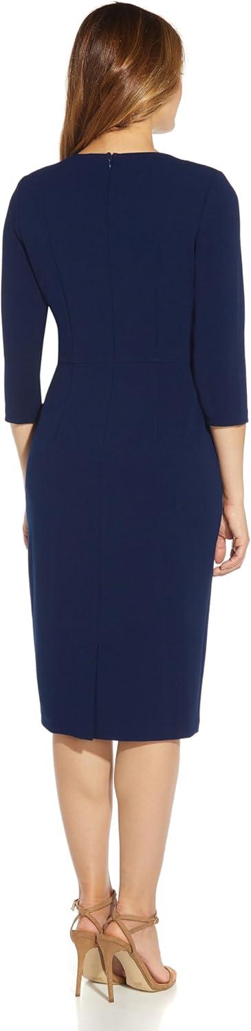 imageAdrianna Papell Womens Knit Crepe Tie Waist SheathDressNavy Sateen