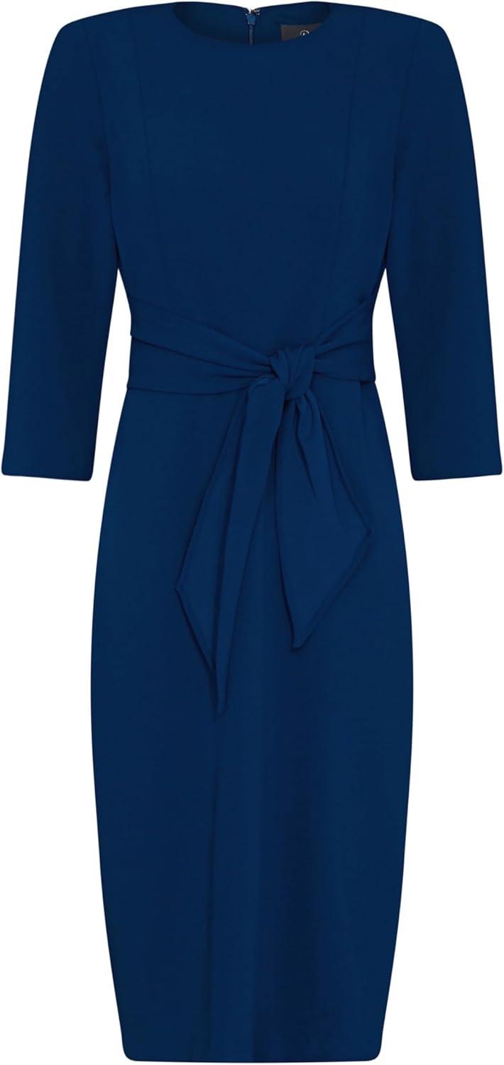 Modern yet sophisticated, this dress will make your day. This day dress features a boat neckline, three quarter sleeves, and a fitted sheath skirt. A self-tie bow at the waist accentuates the figure. Perfect from the office to bridal showers to brunch, this sweet midi dress is the picture of elegance for any event. Crafted from crepe fabric, this dress is partially lined and offers a zipper closure at the back. Add a clutch and stud earrings to complete this effortless dress.