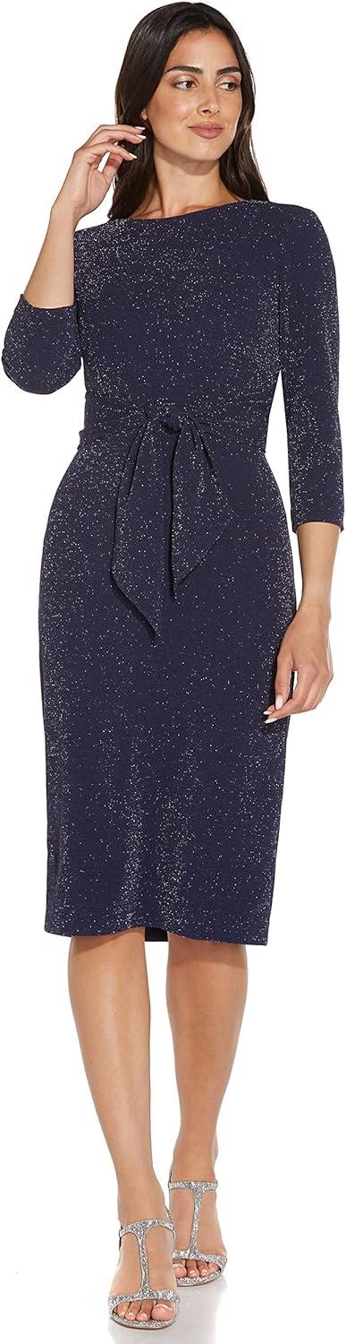 A most-loved best seller, our streamlined sheath gets a soft but shimmering update in our refined metallic knit. Details We Love: a modern crew neckline, chic ¾-length sleeves, and the feminine tie at the front.