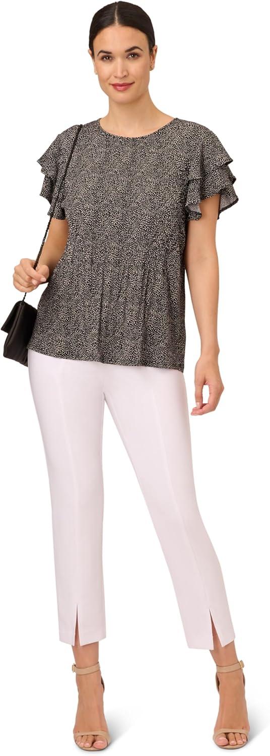 Be the first to review “Adrianna Papell Womens Pleated Knit Double Sleeve Top(Black Painted Dots)”