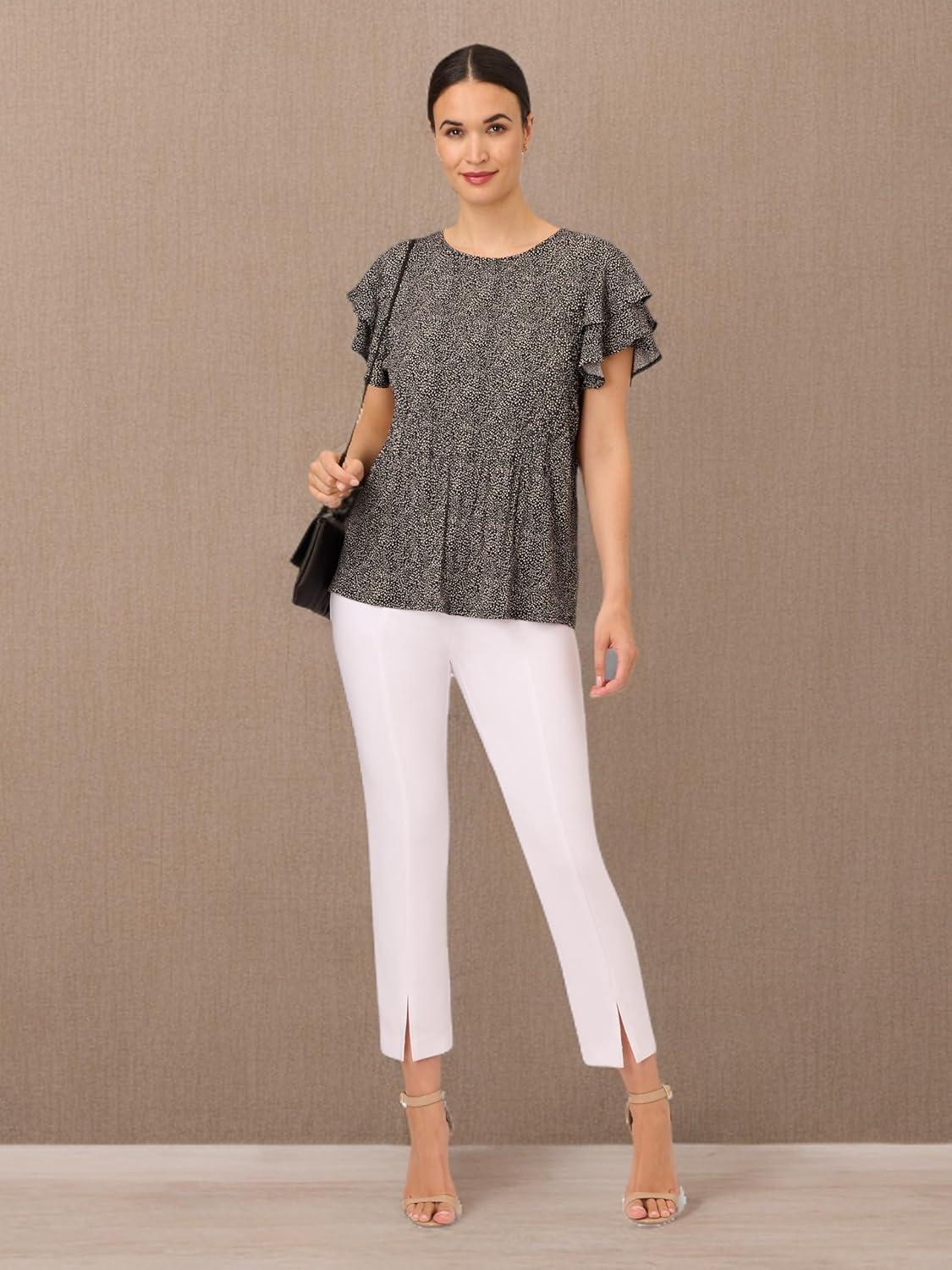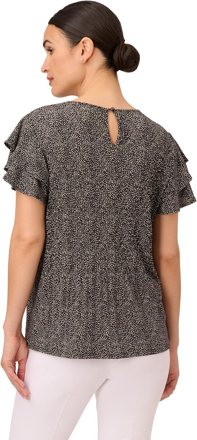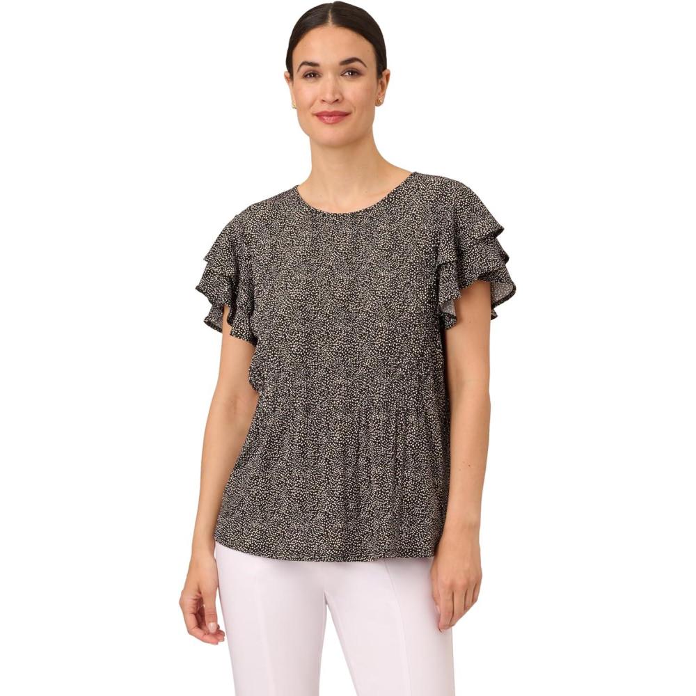 Adrianna Papell Womens Pleated Knit Double Sleeve Top(Black Painted Dots)