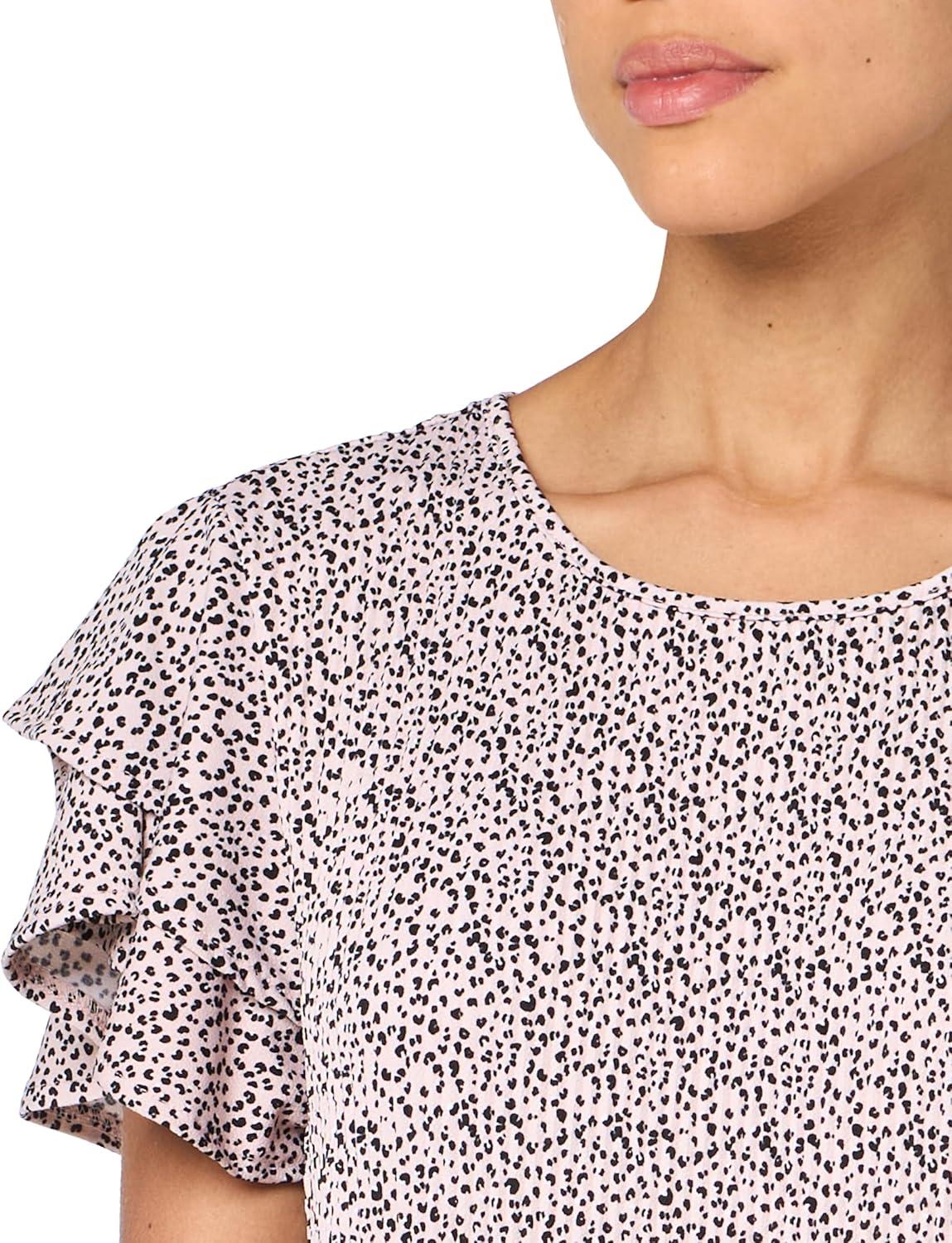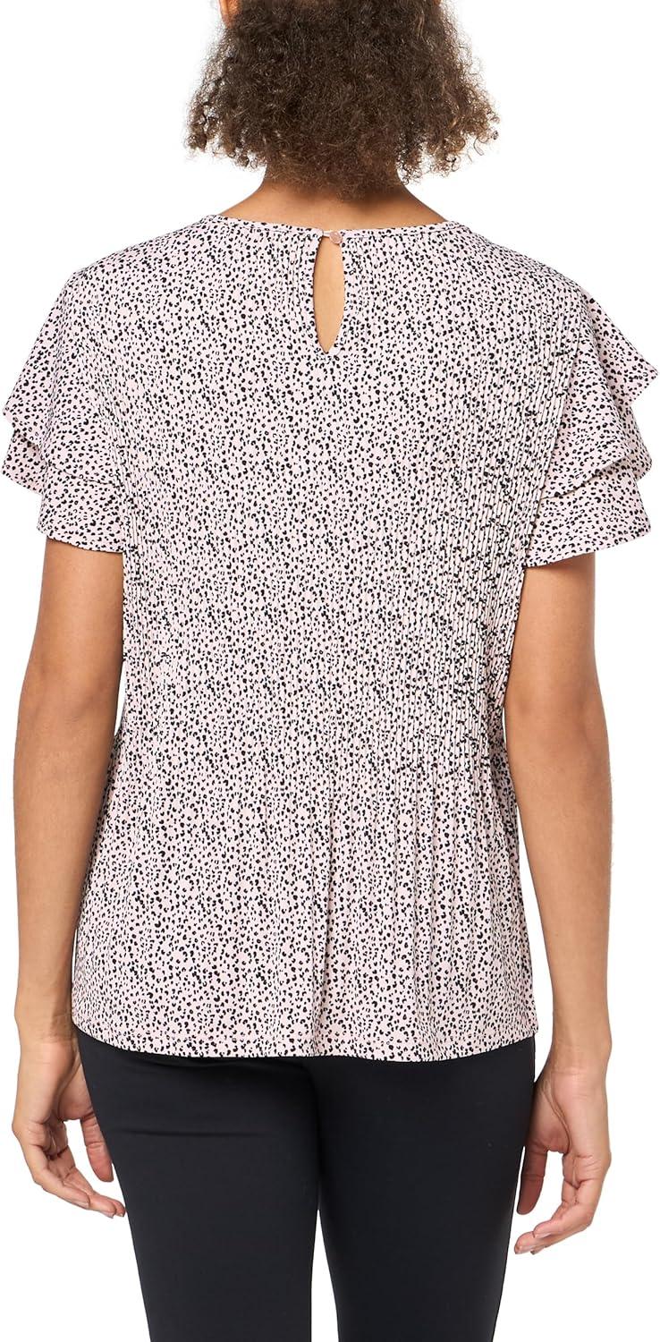 Adrianna Papell Womens Pleated Knit Double Sleeve Top(Champagne/Black Scatter Seed)