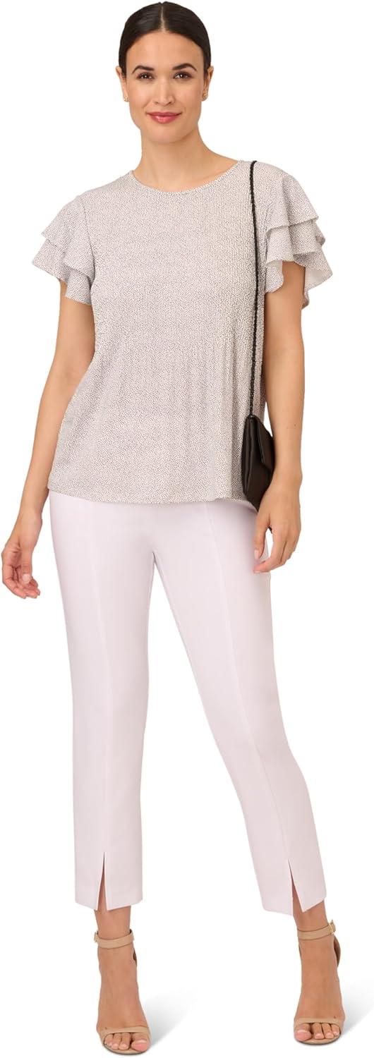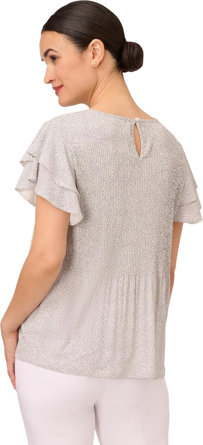 Adrianna Papell Womens Pleated Knit Double Sleeve Top(Ivory/Black Micro Dot)