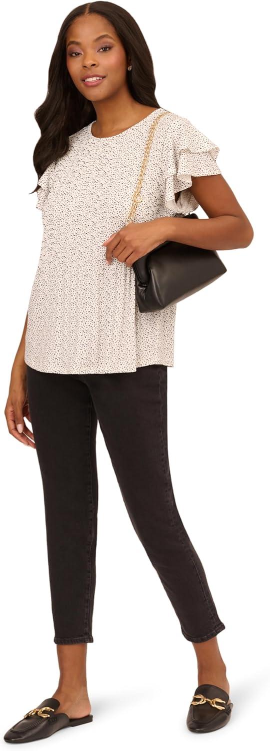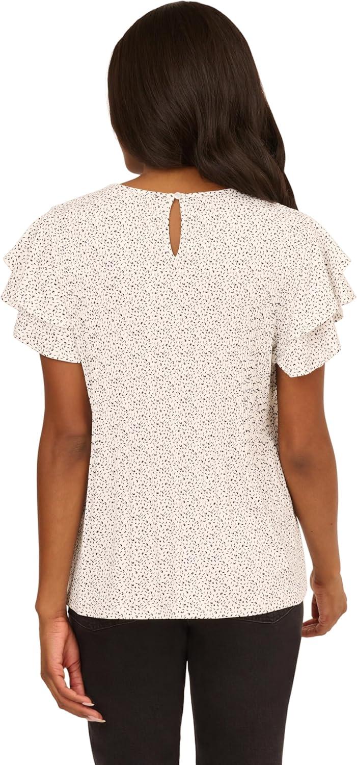 Adrianna Papell Womens Pleated Knit Double Sleeve Top(Ivory Ditsy Foulard)