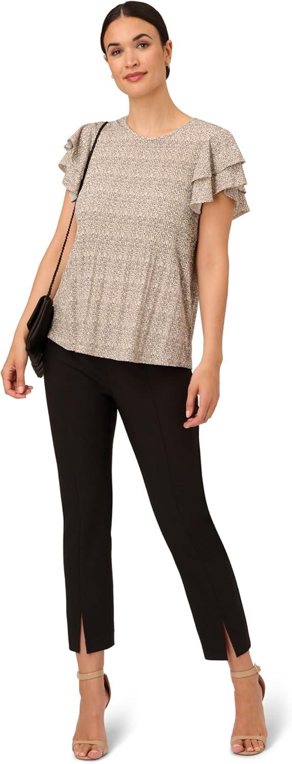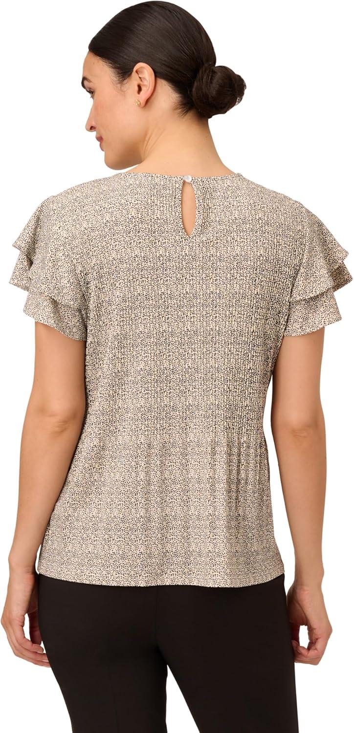 Adrianna Papell Womens Pleated Knit Double Sleeve Top(Ivory Ditsy Foulard)