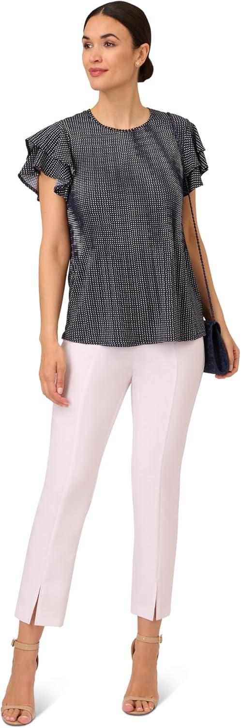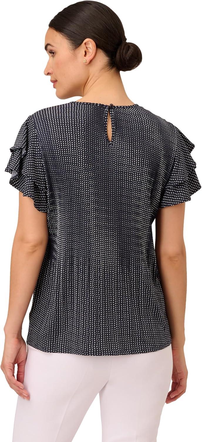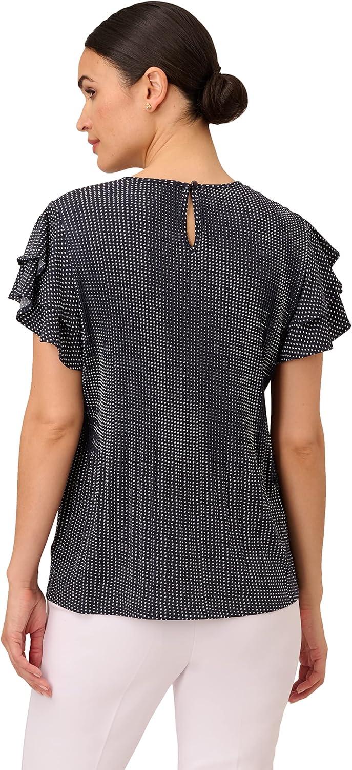 Adrianna Papell Womens Pleated Knit Double Sleeve Top(Navy/Ivory Seed Dot)