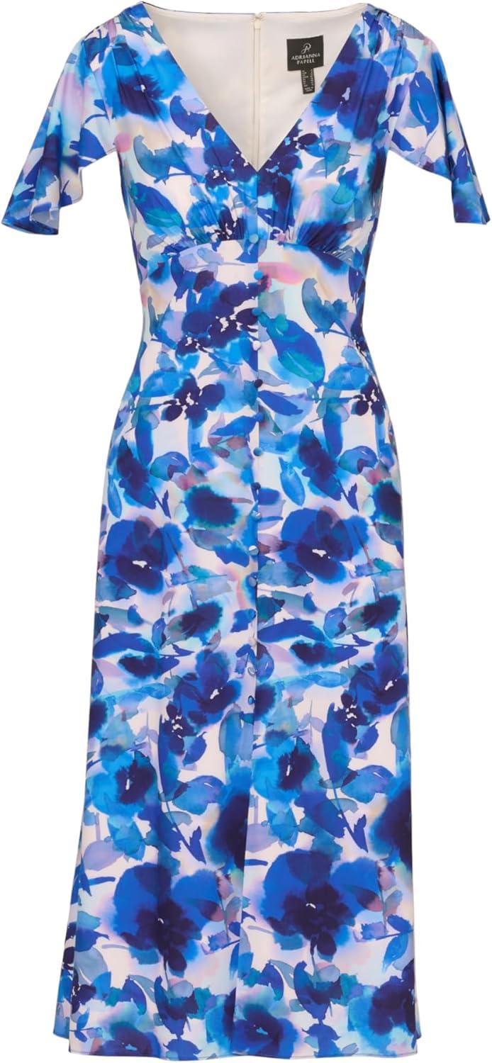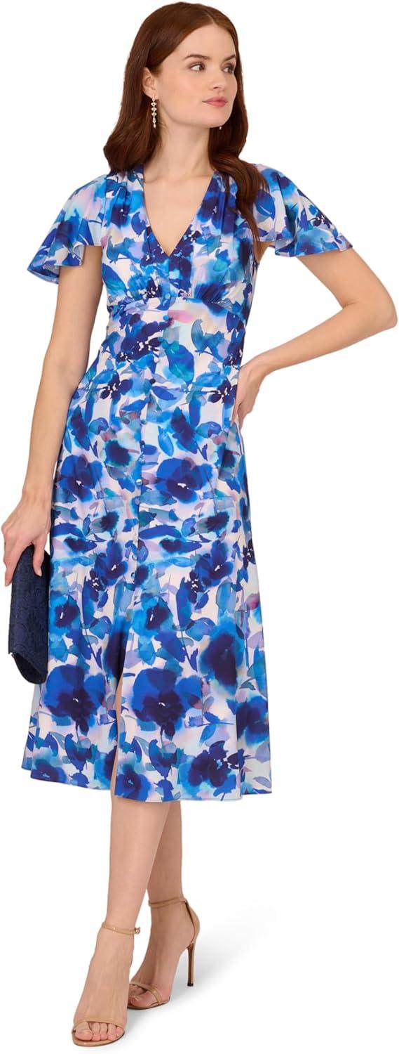 Adrianna Papell Women’s Printed Chiffon Midi Dress(Blue Multi)