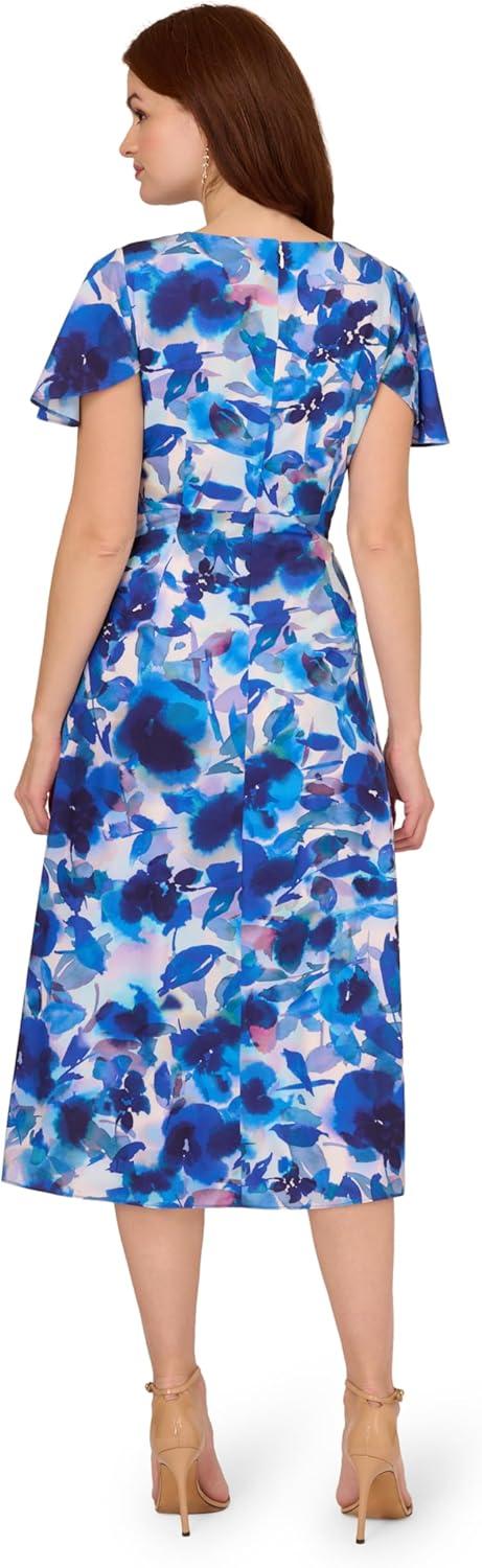 Adrianna Papell Women's Printed Chiffon Midi Dress(Blue Multi)
