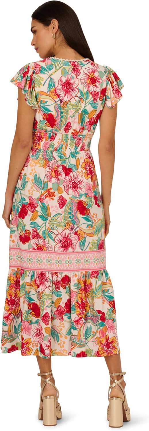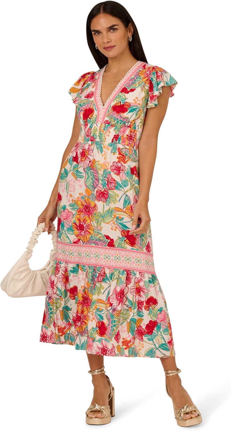 Adrianna Papell Women’s Printed Midi Dress(Pink-green Multi)