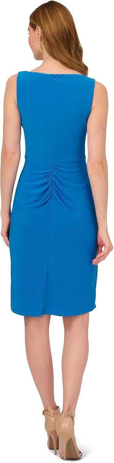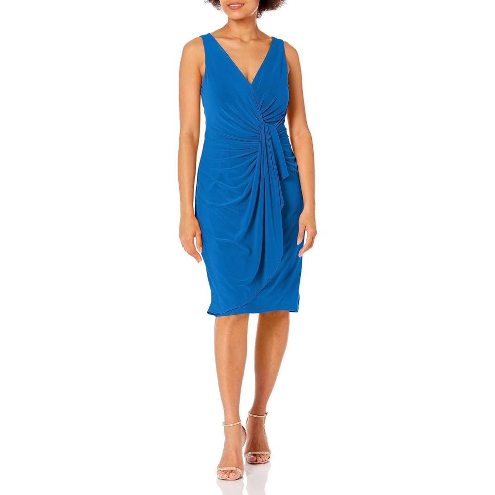Adrianna Papell Womens Short Jersey Draped Dress(Ocean Blue)