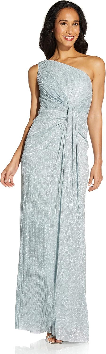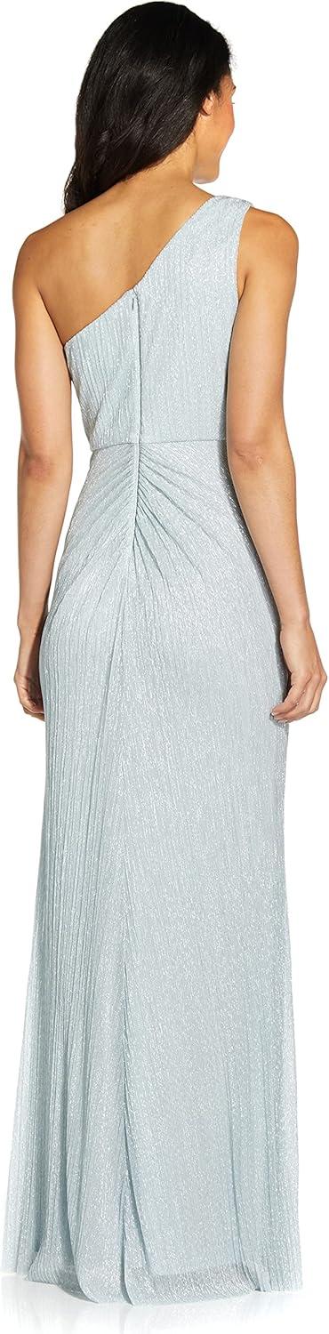 Adrianna Papell Womens Stardust Pleated Draped Gown(Dusty Periwinkle)