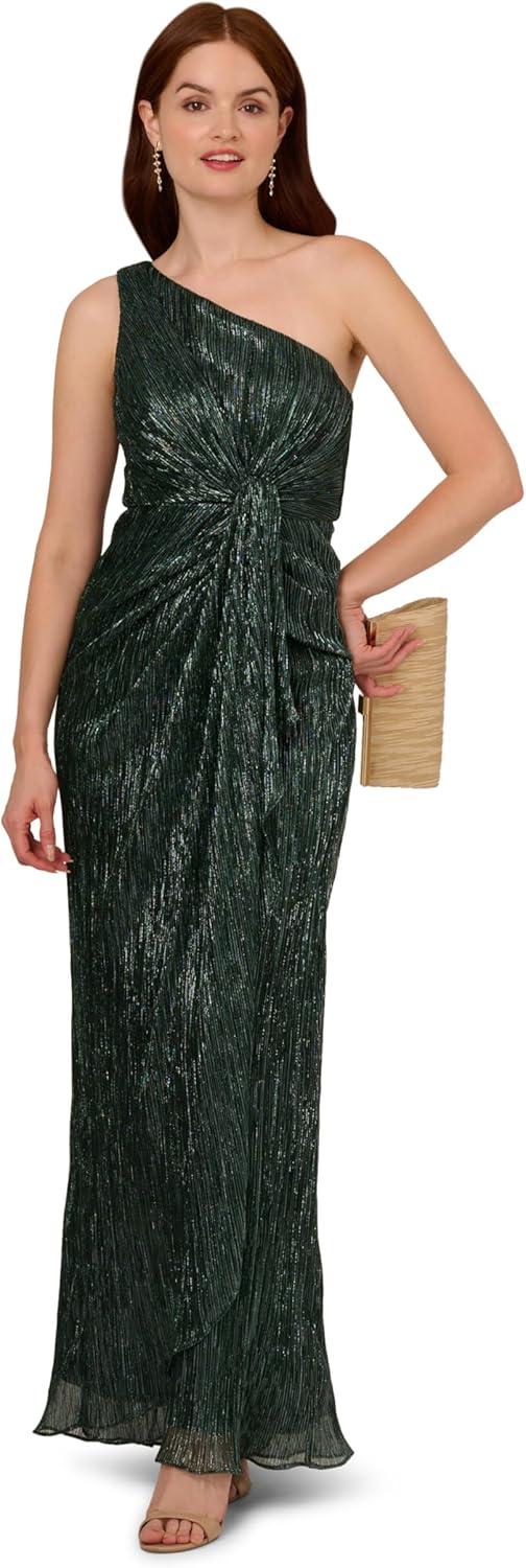 Adrianna Papell Womens Stardust Pleated Draped Gown(Green Pine)