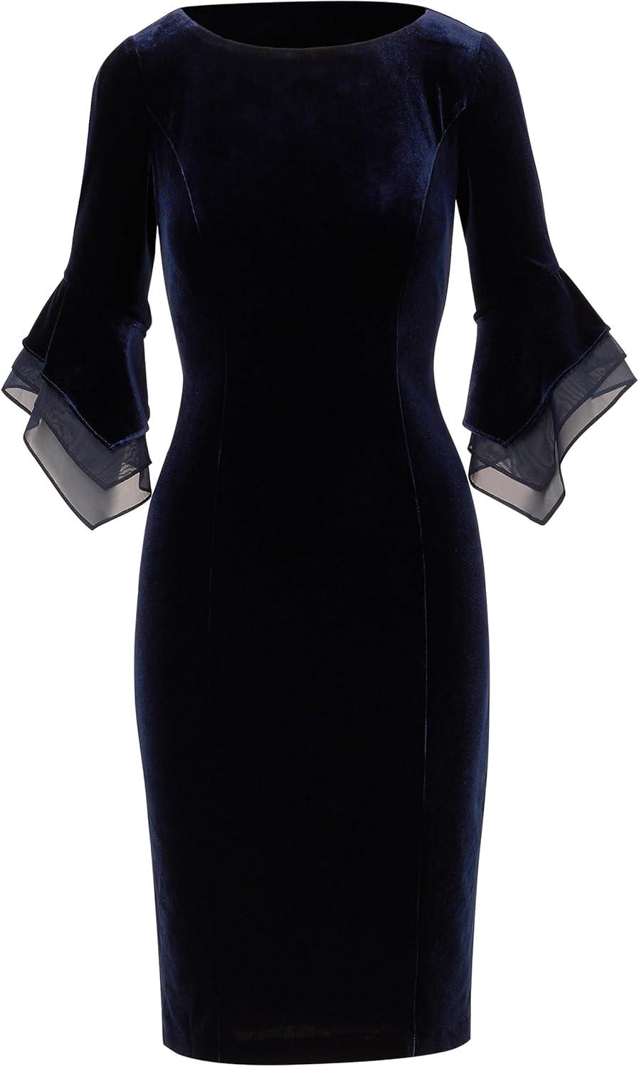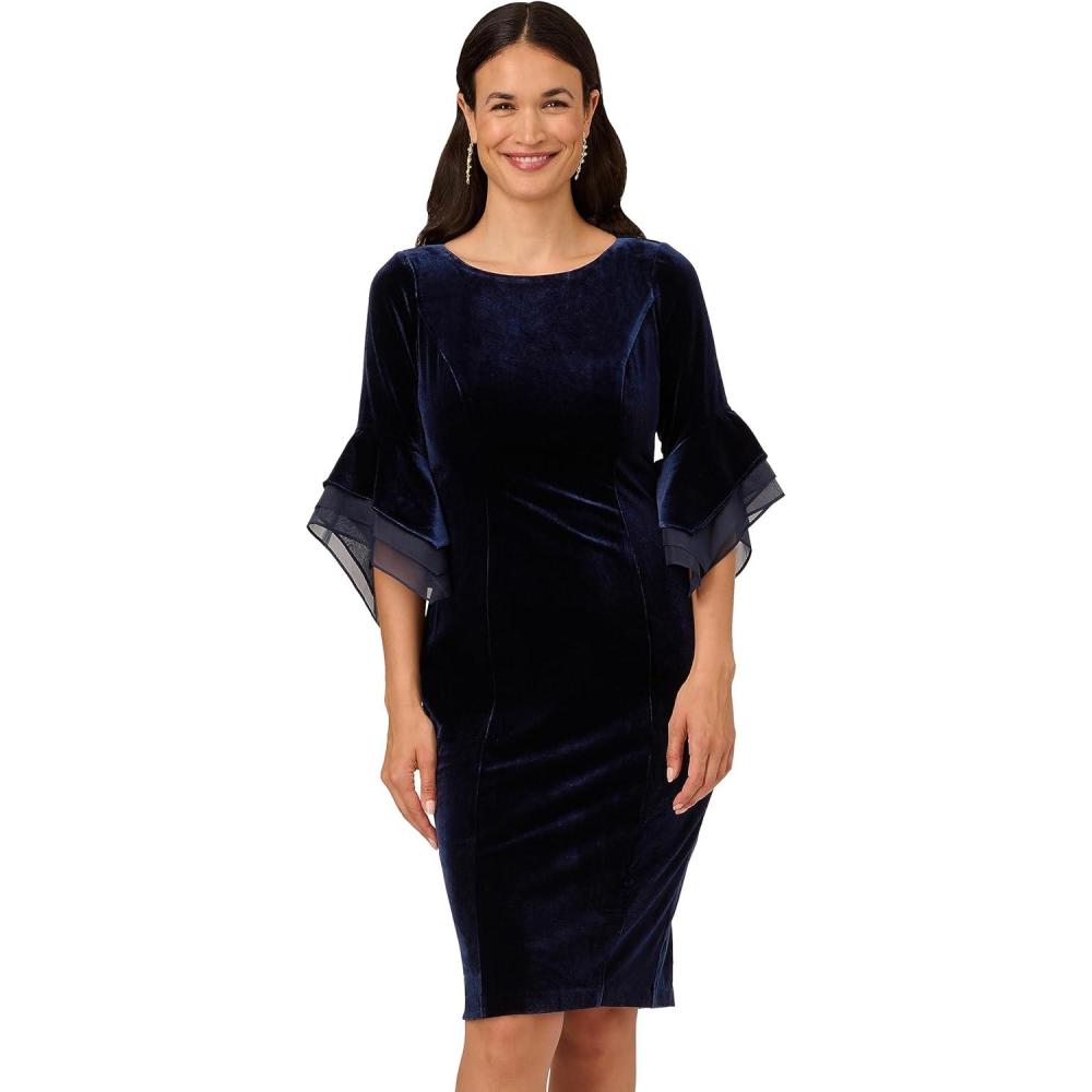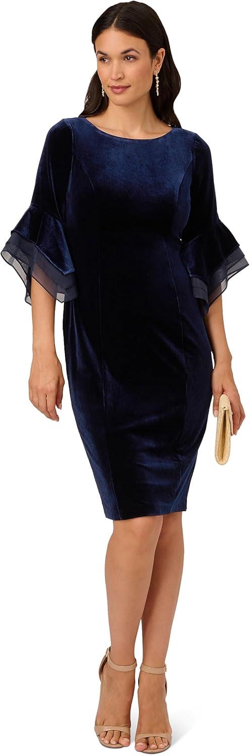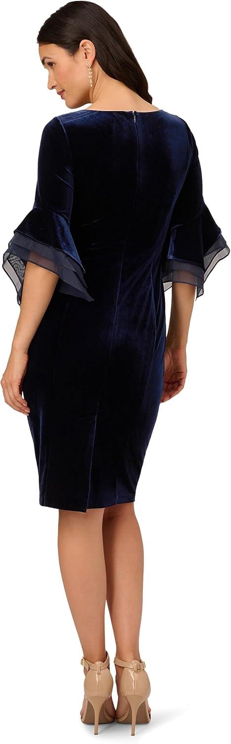 Adrianna Papell Womens Velvet Bell Sleeve Short Dress(Midnight)